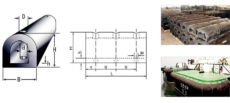 橡膠護舷是安裝在碼頭或船舶上,用以吸收船舶與碼頭或船舶之間在靠岸或系泊時的碰撞能量,保護船舶、碼頭免受損壞。根據(jù)橡膠護舷受力情況可分為剪切型、轉(zhuǎn)動型和壓縮型等;根據(jù)護舷的結(jié)構(gòu),橡膠護舷又可分為半圓型(D)、超級拱型(SA)、圓筒型(CY)、超級鼓型(SC)護舷等等。